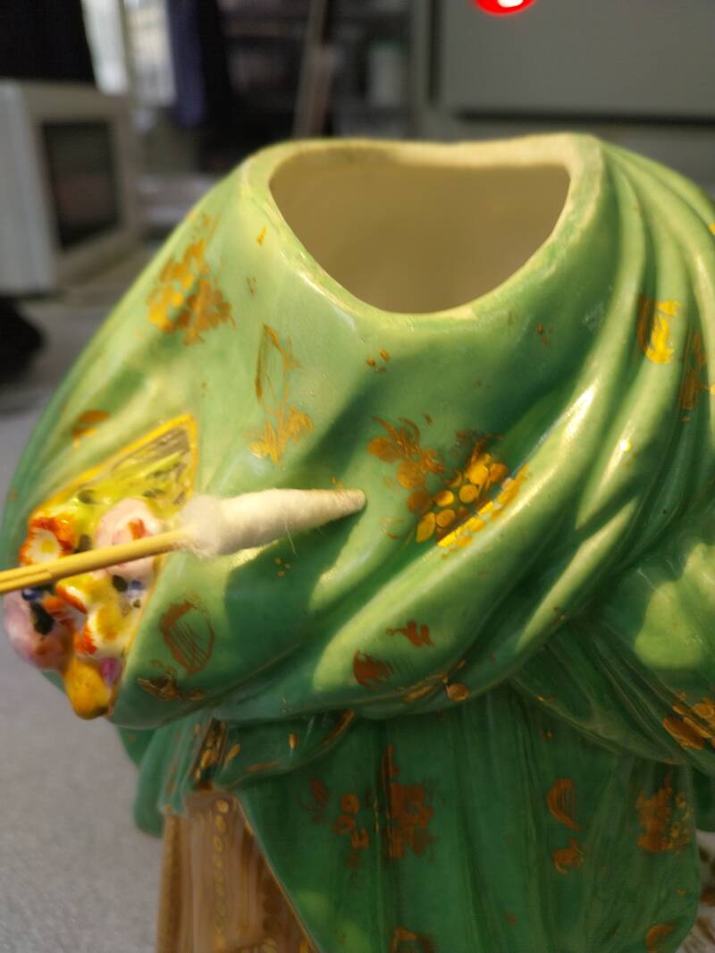 La restauration complète allie nettoyage, collage, comblement et retouche pour une restitution de l'objet selon vos souhaits.